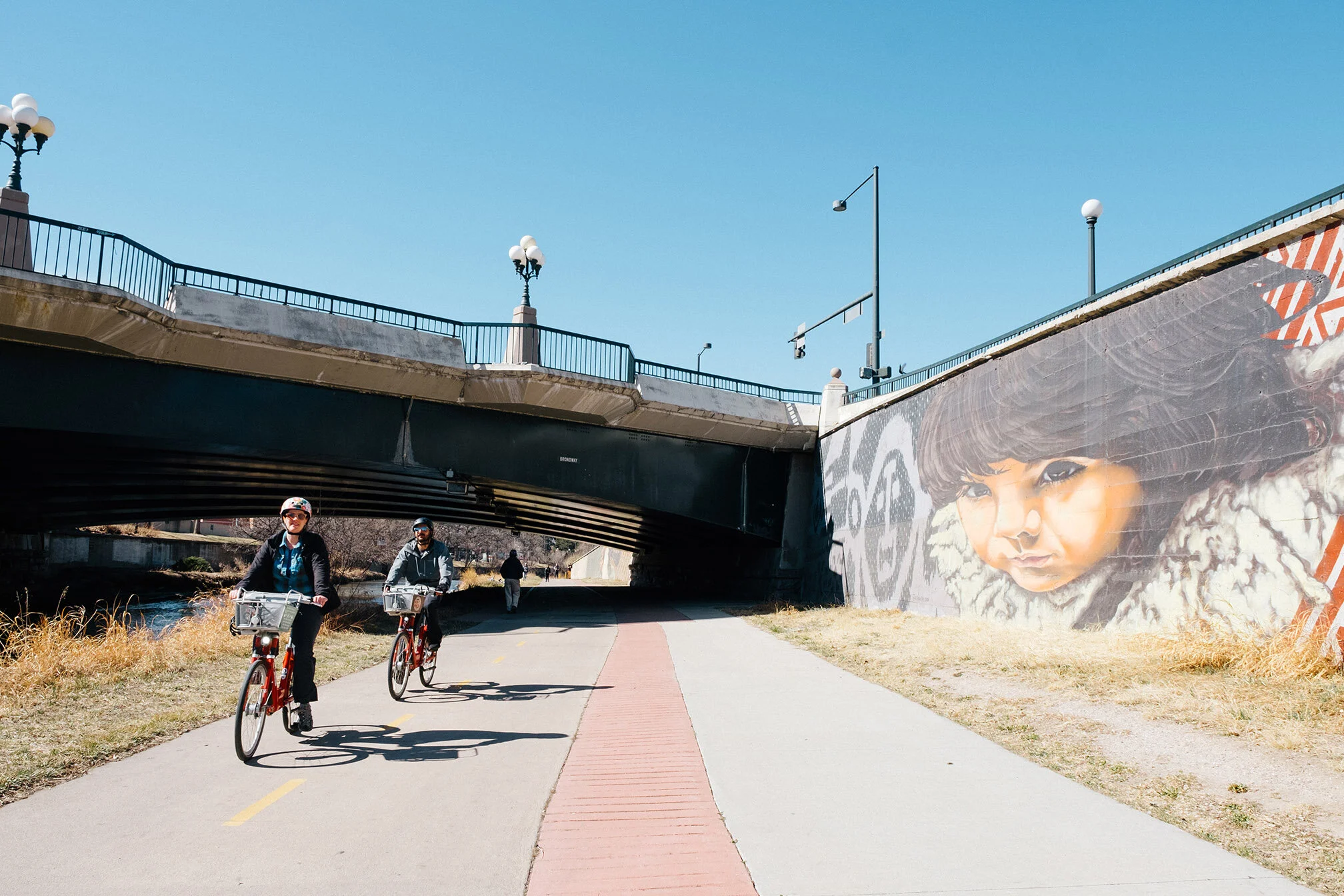 Denver is a serious biking town, and luckily that’s not just for residents. Anyone can pop up into Denver’s many diverse neighborhoods and cruise back down around the mural-covered banks of Cherry Creek with a ride along the gorgeous 42-mile trail Cherry Creek Trail. To see the city the way the locals do (up close, personal, and on two wheels), buy a 24-hour ($9) membership to the B-Cycle bike share program and take your borrowed two-wheeler for a spin. Cruise down the Cherry Creek pathway, checking out local spots like the Denver Skatepark, the largest free skatepark in the country, Tattered Cover Bookstore, and the historic but newly transformed Union Station, which has an urban beekeeping program on its downtown roof. Or grab a kayak at Confluence Park, where Cherry Creek meets South Platte River, and paddle your way through the heart of the city. After all, not every capital city has rapids running through it.